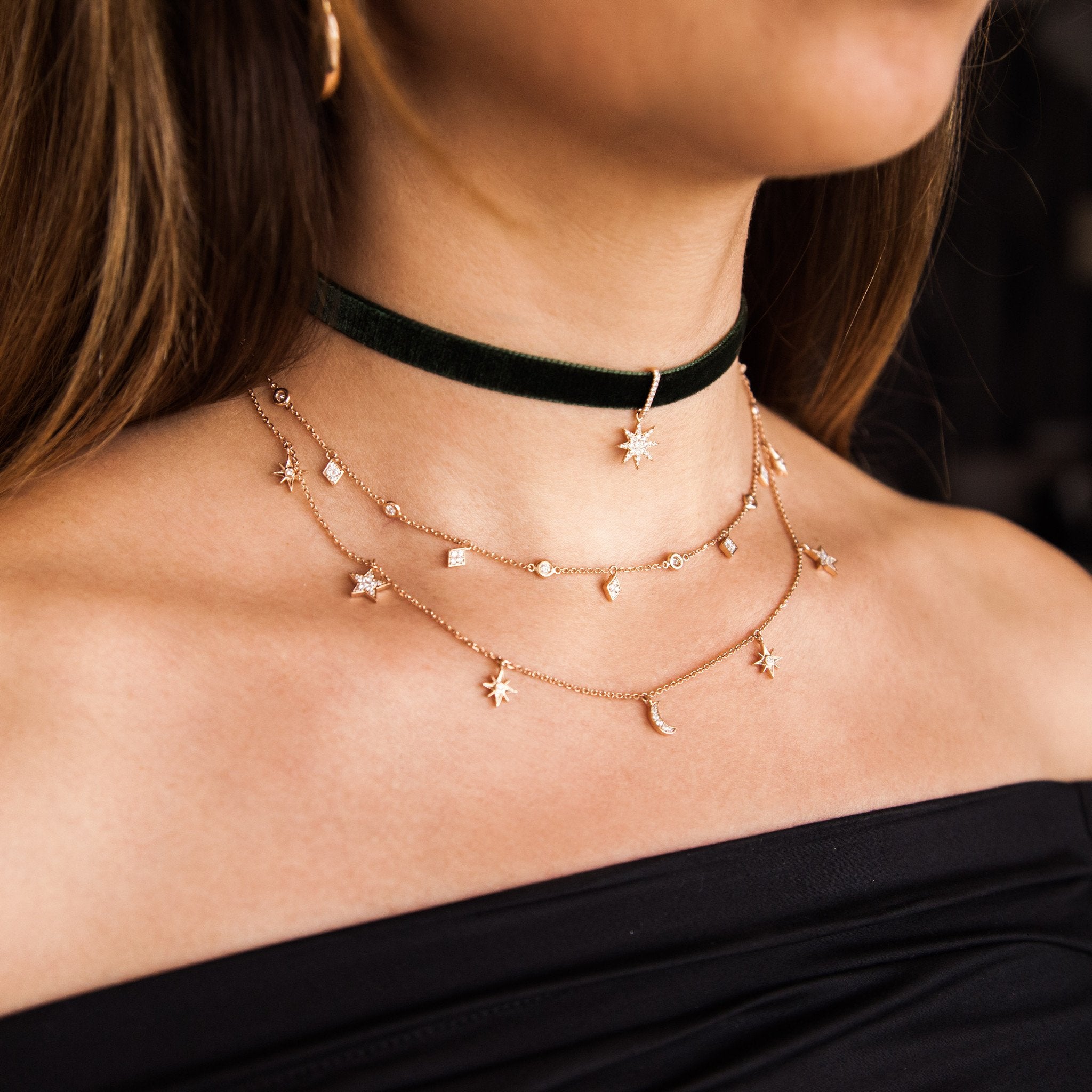 Prepare for a journey full of inspiration - Stardust Necklace or wear the magic in your heart like a charm - Star Choker In Velvet Ribbon