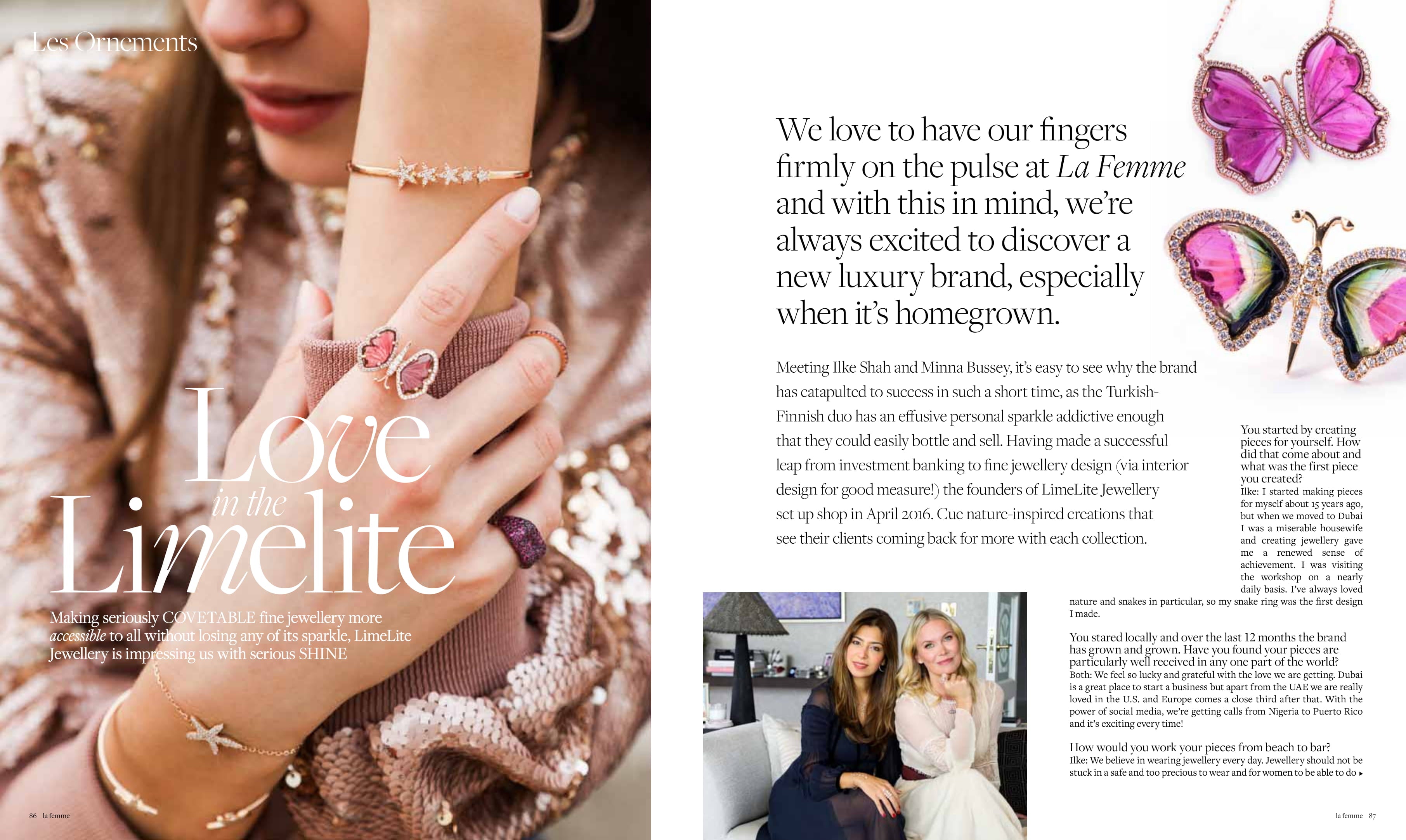 The Perfect Balance "Limelite Jewellery combines quality craftsmanship. We spoke with founder Ilke Shah about strategically smart price points and aesthetically pleasing design. How did you know it was the right time to launch your own brand and what were the stepping-stones to that point? After years of collecting brand name pieces, I found it was getting a bit ‘same-same’ everywhere you go – everyone had the same pieces. I started making fine jewellery for myself and received great feedback from friends about my designs. Creating the LimeLite name, logo and website was a family affair – lots of help...... CLICK HERE TO READ MORE