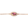 Tourmaline Evil Eye Bracelet is made of 0.17 carats of white diamonds (vs1 - si1 clarity), 2.6 grams of 18k gold and a pink tourmaline. It's fastened with a lobster claw clasp.