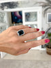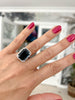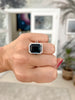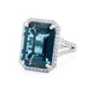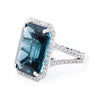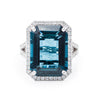 The most elegant, striking ring that will not go unnoticed! A beautiful occasion ring featuring a deep, dark blue London Topaz framed with white diamonds and set in 18k gold.