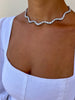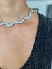 Get ready to make waves with this jaw-dropping diamond tennis necklace! Shaped like a stunning ocean wave, it features larger solitaire-cut diamonds that stand out like the stars of a blockbuster movie, surrounded by a sparkling entourage of pavé diamonds. With this necklace, every glance is a compliment waiting to happen, and every outfit instantly gets upgraded to 'red-carpet ready.'
