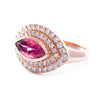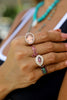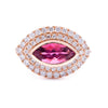 Tourmaline & Pave Evil Eye Ring is made of 3.9 grams of 18k gold (final, exact weight depends on your ring size), 0.6 carats of white diamonds (vs1 - si1 clarity) and a pink tourmaline.