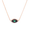 An addition to our popular collection of evil eye jewellery. Layer with longer necklaces or wear on its own. Made of 18k gold, black diamonds, white diamonds and an emerald.