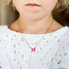 A delicate necklace featuring a simple ruby rose gold butterfly which sits nicely on the collarbone. A great gift for a little girl!