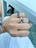 One of our new favourites! A strikingly beautiful and sparkly ring featuring a rectangular purple tourmaline framed with pave cut white diamonds and set in 18k gold. This ring looks good on index, middle or ring finger.