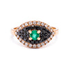 Evil Eye Ring to protect you from all evil... And to look very cute on your pinky finger! Made of black diamonds, an emerald, white diamonds and 18k gold.
