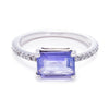 Tanzanite Pinky Ring is an eternity ring adjourned in pave cut white diamonds and a rectangular, purple Tanzanite gemstone. Tanzanite is the birth stone for those born in the month of December, which makes it a beautiful and thoughtful gift idea for the sassy Sagittarius's and cool Capricorns born in the last month of the year.